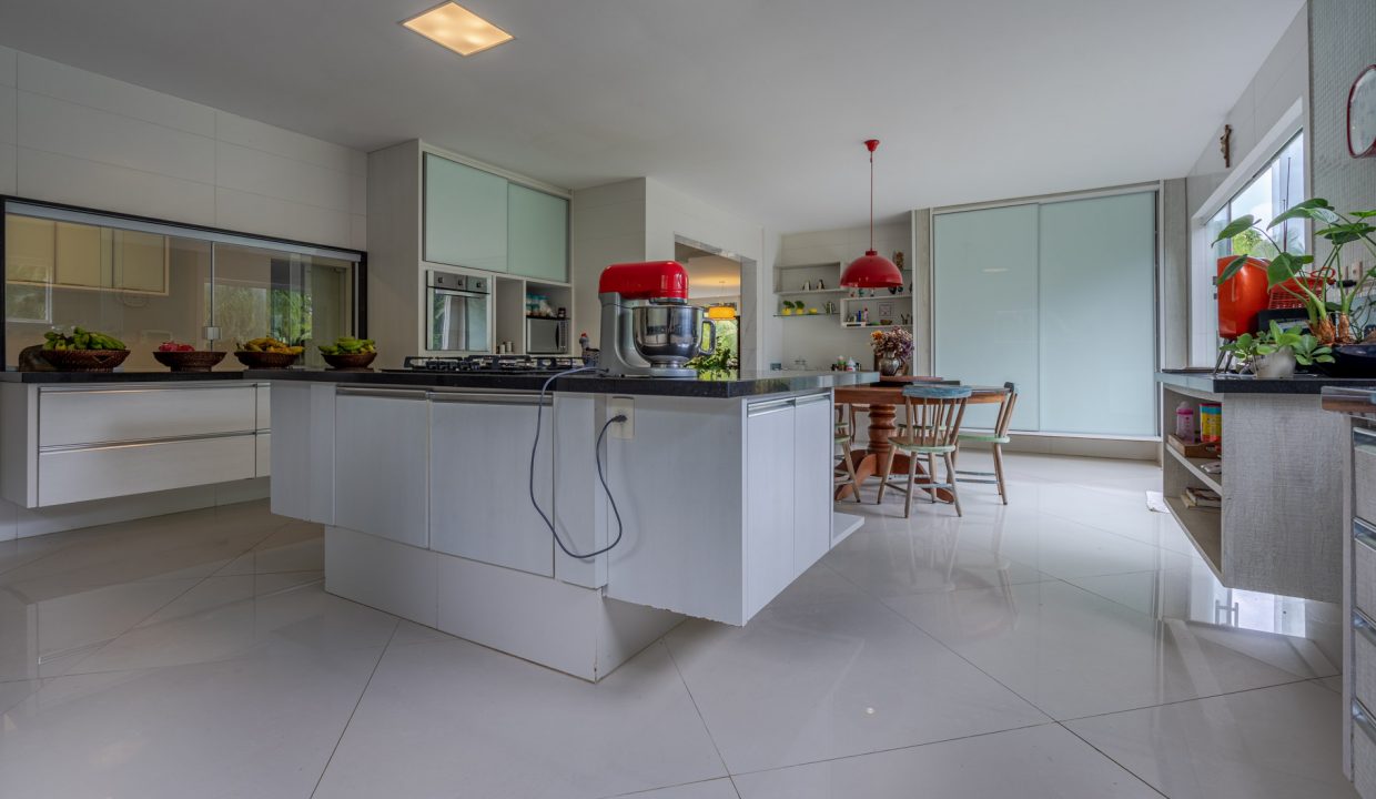 Cozinha maravilhosa bem clara com vista para a área da piscina, uma ilha enorme com bancadas em granito e armários embutidos em toda extremidade, 2 despensas, lavabo, rouparia, área de serviço, .