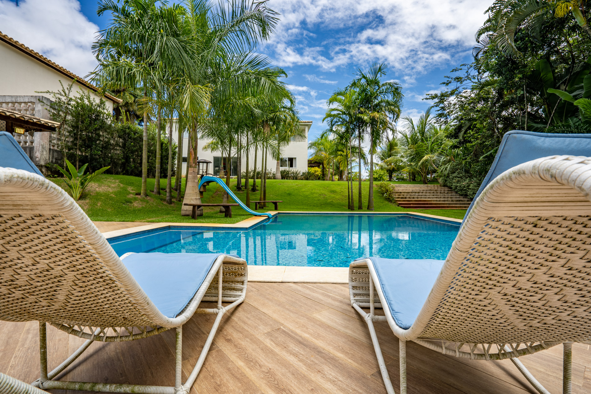 Espetacular jardim em todas extremidades da casa com belo paisagismo, vista e acesso para lagoa e vários pés de frutas típicas da nossa região tropical como: coco, manga, amora, maracujá, saputi, banana, jambo, acerola dentre outras.