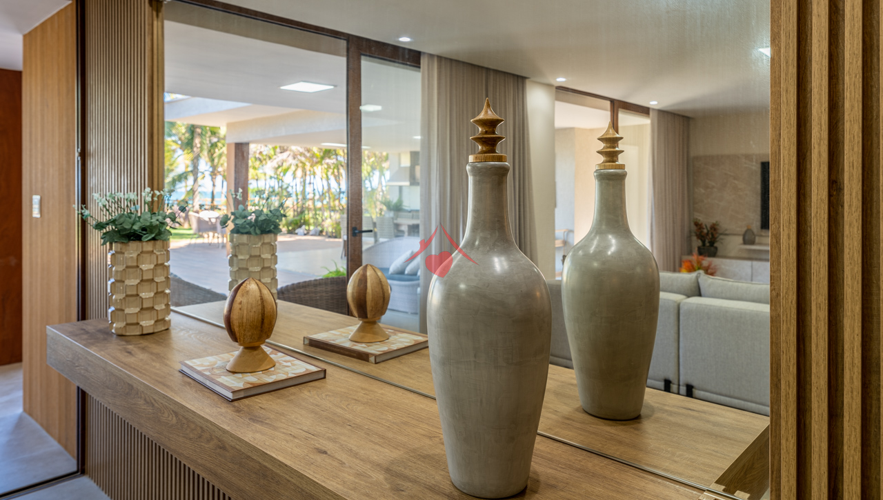 Um dos diferenciais dessa mansão é sua localização privilegiada dentro do condomínio de alto padrão, ambientes integrados e ao mesmo tempo com a vista incrível permanente para o mar.